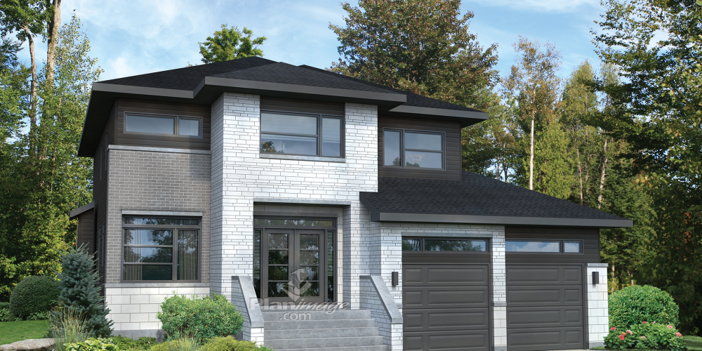 Avec son revêtement de briques, de pierres et de bois, cette maison à étage affiche un style résolument moderne. Elle mesure 46 pieds 10 pouces de largeur sur 43 pieds 6 pouces de profondeur, offre une surface habitable de 2 423 pieds carrés et dispose d’une terrasse couverte à l’arrière et d’un garage double de 646 pieds carrés avec un espace pour un atelier.
